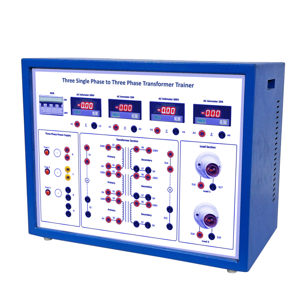 MI-ET51 Lamp Load Single/Three Phase is an important device in all the Electrical laboratories. One can connect a load upto 12Amp using this product. The device comes with On Board Switches, so that one can vary the load as