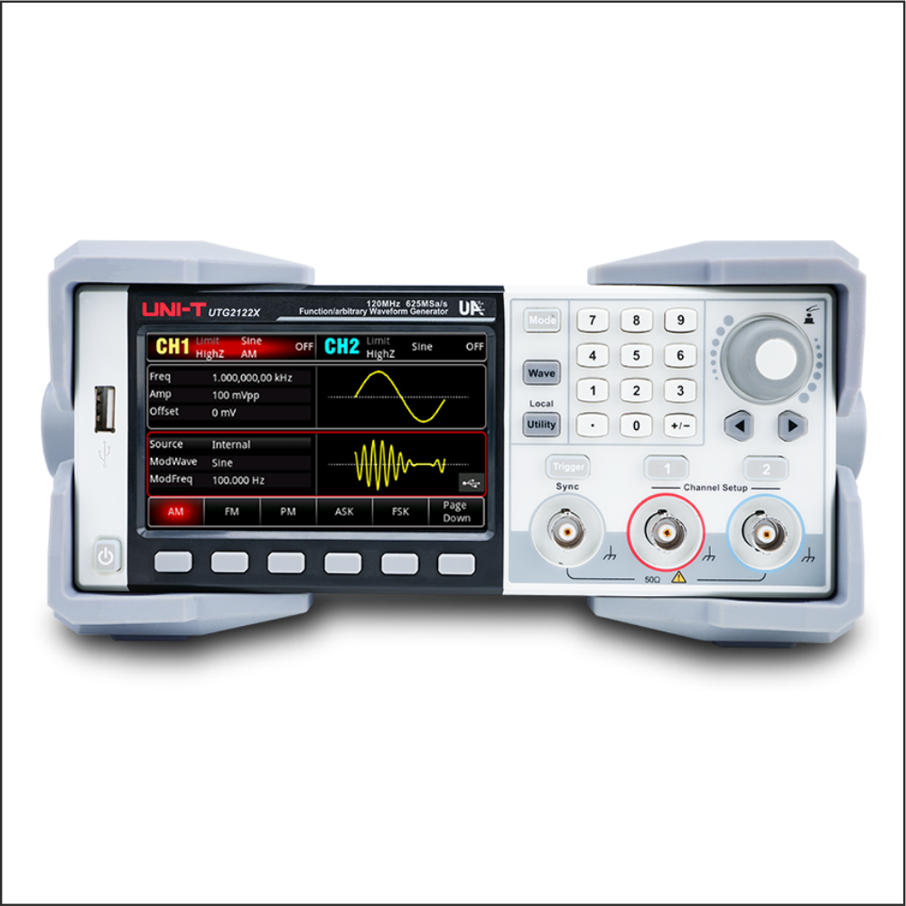 The UTG2000X series uses DDS technology to produce accurate and stable waveform output with a resolution as low as 1μHz. It is an economical, high performance, multi-function function/arbitrary waveform generator. It can generate accurate, stable, pure and low distortion output signals. Convenient operation, superior technical specifications and humanized graphic display. It is a multi-purpose device to meet the needs of learning and testing and to improve work efficiency